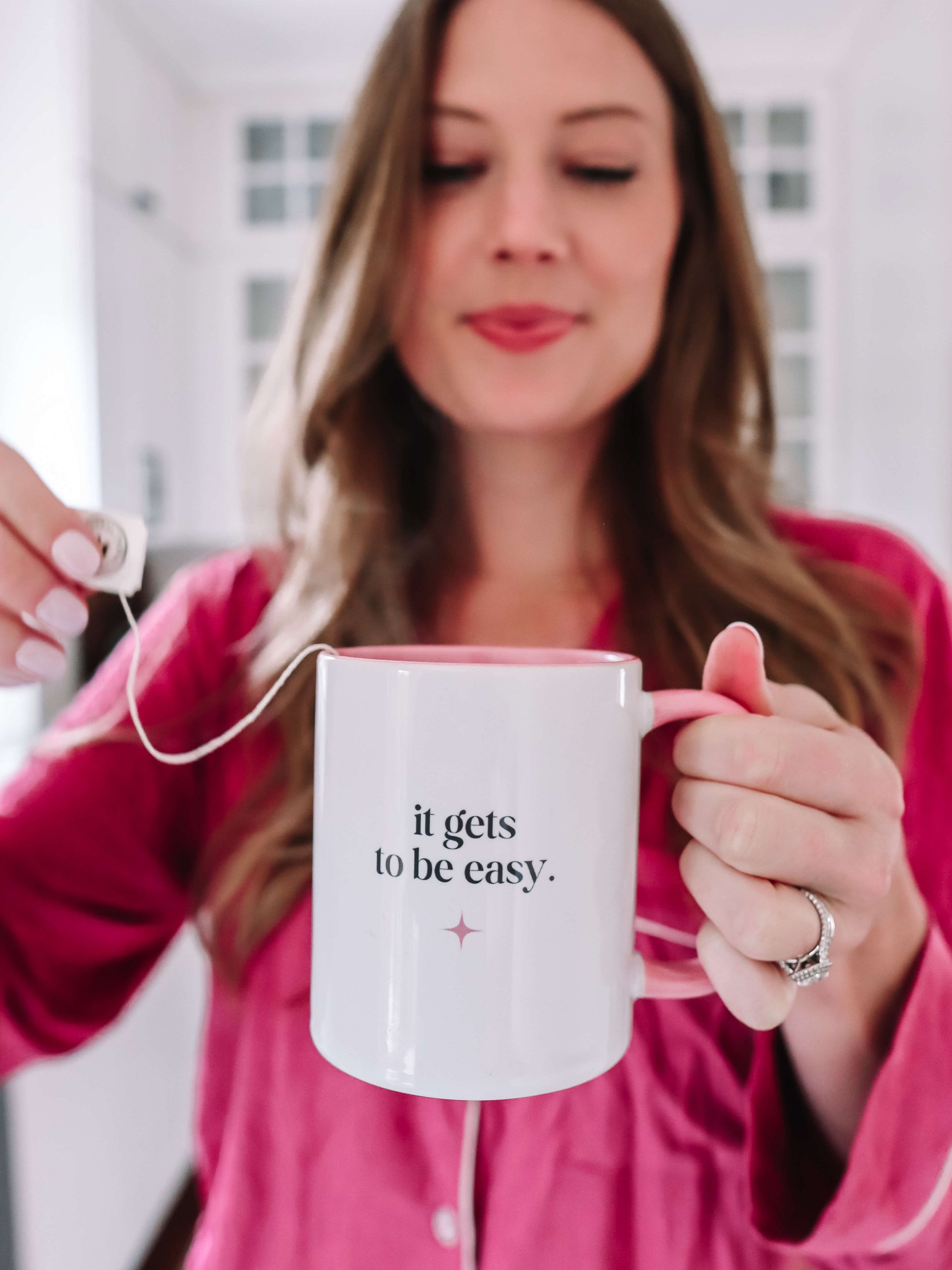 The handle and inside of the mug are a beautiful pink color for a little pop of fun!